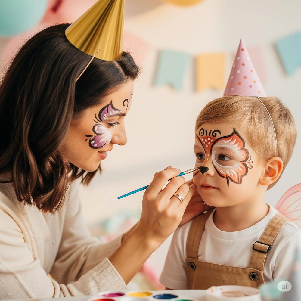 Es el complemento perfecto para convertir cualquier día en una fiesta. Ideal para cumpleaños, Halloween, Carnaval, fiestas escolares o simplemente una tarde de juegos en casa. También es completamente seguro para realizar "belly painting" en barriguitas de embarazadas.
